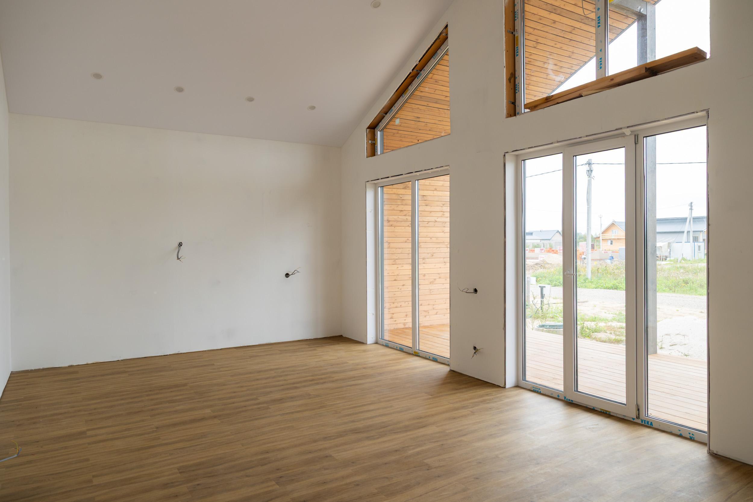 — Евровагонка (окрашивайте в ваш цвет!), натяжные потолки с LED-светом, ламинат, двери — просто добавьте личные вещи!